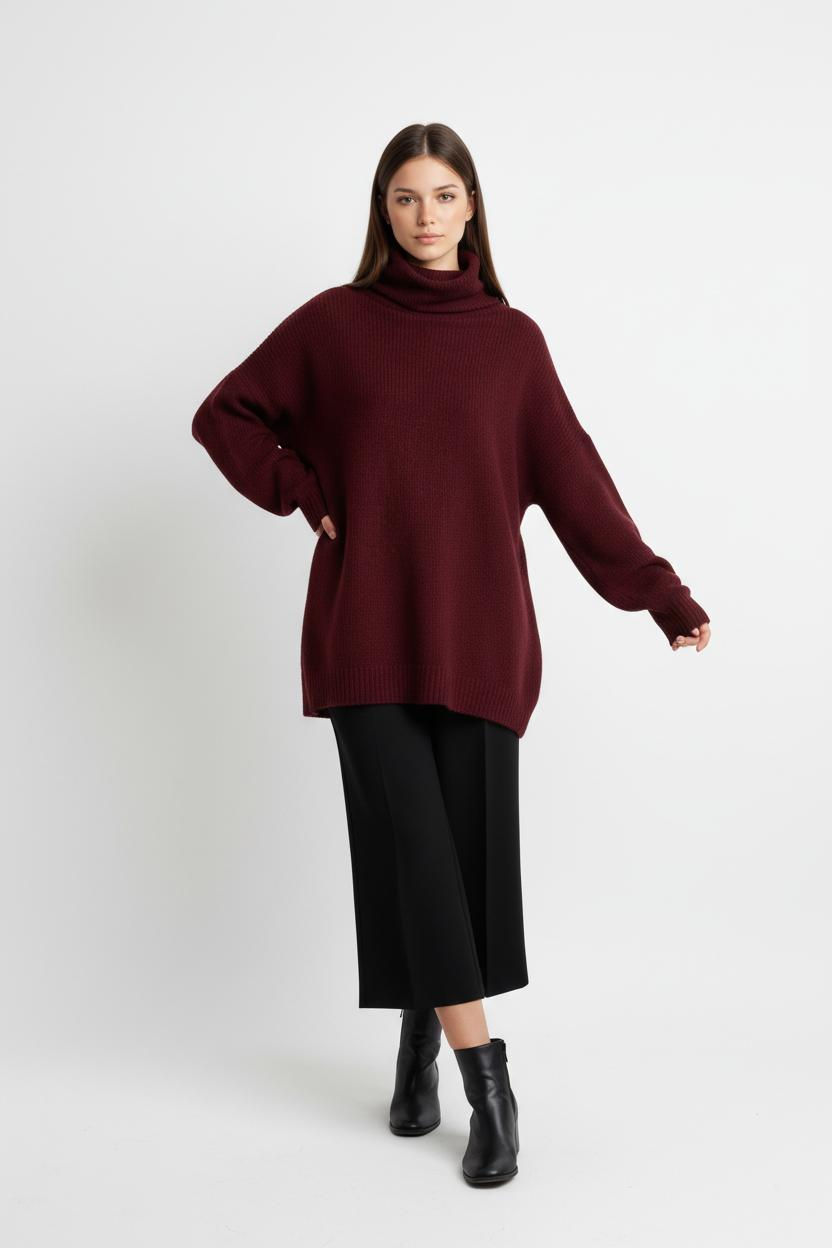 Oval Yaka Dökümlü Kazak